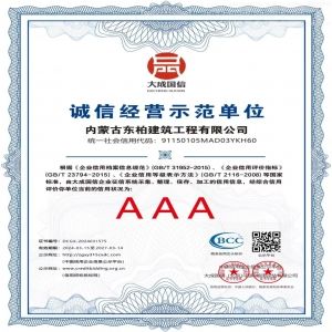 內蒙古東柏建筑工程有限公司被評為AAA級信用企業(yè)